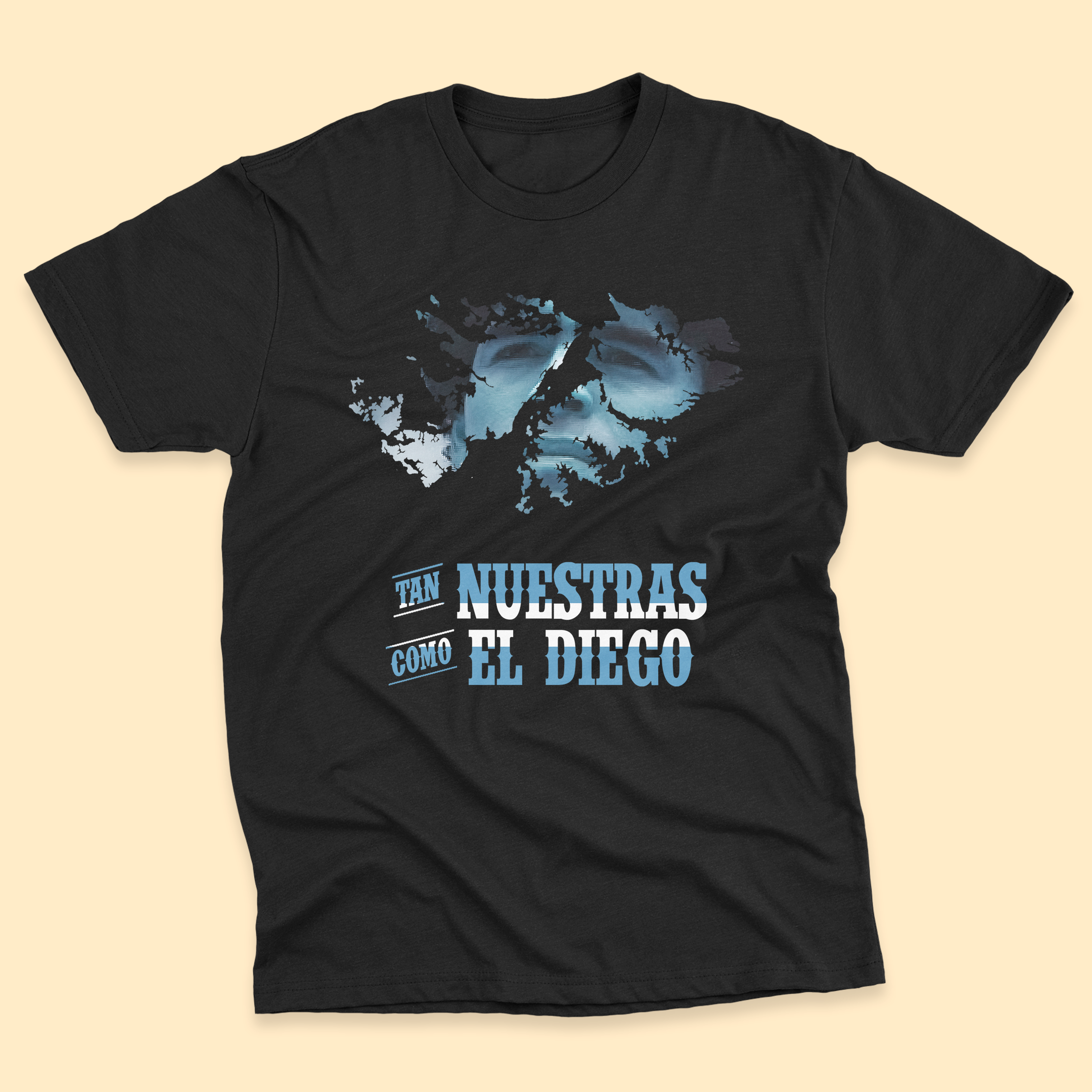 Dos pasiones, un solo sentimiento nacional. 💙🤍 Esta remera es un poderoso símbolo que fusiona dos íconos innegables del sentir argentino: las Islas Malvinas y la figura eterna de Diego Armando Maradona. Con el rostro del 10 dentro del contorno de las islas y la frase "Tan nuestras como el Diego", es un manifiesto de identidad, orgullo y soberanía.